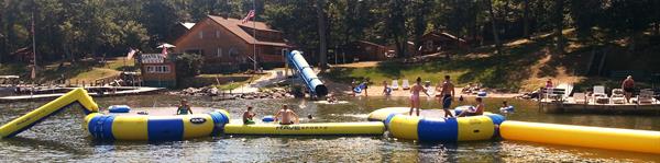 Each of our 18 Log Lakehomes feature flatscreen TV/DVD’s w/cable, wireless internet, air conditioning, fireplaces, whirlpool baths, charcoal BBQ grills, decks/screened porches, & fully equipped kitchens. Our lodge/office features a exercise room, game room, sauna, sitting area, & spacious deck overlooking the harbor & beach. It is fully stocked with everything a vacationer needs including ice cream, old-fashioned tap rootbeer, beer on draft, light groceries, snacks, beverages, bottled beer, wine, cooking/grilling supplies, & resort apparel. We specialize in small/large family reunions with daily activities for kids (40′ waterslide, waterbongo, sand castle building contests, playground, tennis court, tubing, & more) & fishing groups (we offer fully equipped fishing and ski boats for any water activity you have in mind.) From dock fishing to sport fishing you will be sure to catch your stomach’s limit!! Our signature ”Grand Lodge” accommodates up to 25 family members with 9 bedrooms, 5 baths, private bar, pool table & plenty of room for the entire family to gather. We have enjoyed creating carefree vacations for our guests for over 25 years & look forward to meeting you!